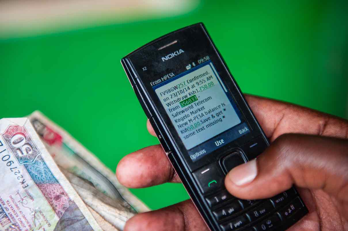 Os beneficiários da GiveDirectly usam a tecnologia custo-eficaz dos aparelhos celulares [Pt. telemóveis] para receberem diretamente suas transferências de dinheiro.