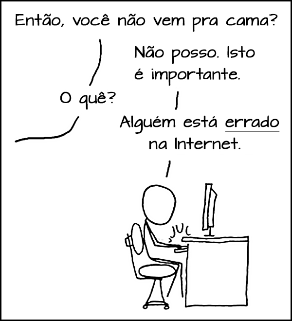PS: Se concorda comigo sobre o que disse acima, você pode ser tentado a postar ou enviar o post às pessoas cada vez que eles não estejam jogando por estas regras. Infelizmente, é provável que isso seja contraproducente e leve a mais conflitos e não a menos. É útil compartilhar este post de maneira geral, mas não o use como uma forma de policiamento dos outros. A maneira mais eficaz de promover este estilo de interação é exemplificar isso na maneira de tratar os outros, e não entrar em longas conversas com pessoas que têm formas menos produtivas de conversar.