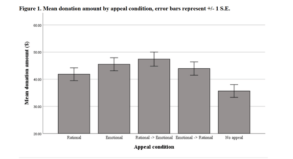 Recentemente, alguns estudos identificaram um efeito gerado pelos cenários que apresentam estímulos mais racionais, como é o caso de Lindauer et al. (2020). No entanto, ainda assim, as condições mais emocionais geram mais doações.