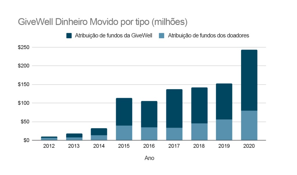 Embora a nossa lista de recomendações seja a mesma, fizemos grandes progressos na nossa investigação identificando novas oportunidades de doação dentro das nossas melhores instituições de caridade. Esperamos direccionar cerca de 300 milhões de dólares para as nossas melhores instituições de caridade em 2021, em comparação com cerca de 180 milhões de dólares em 2020. Mais detalhes sobre isso abaixo.