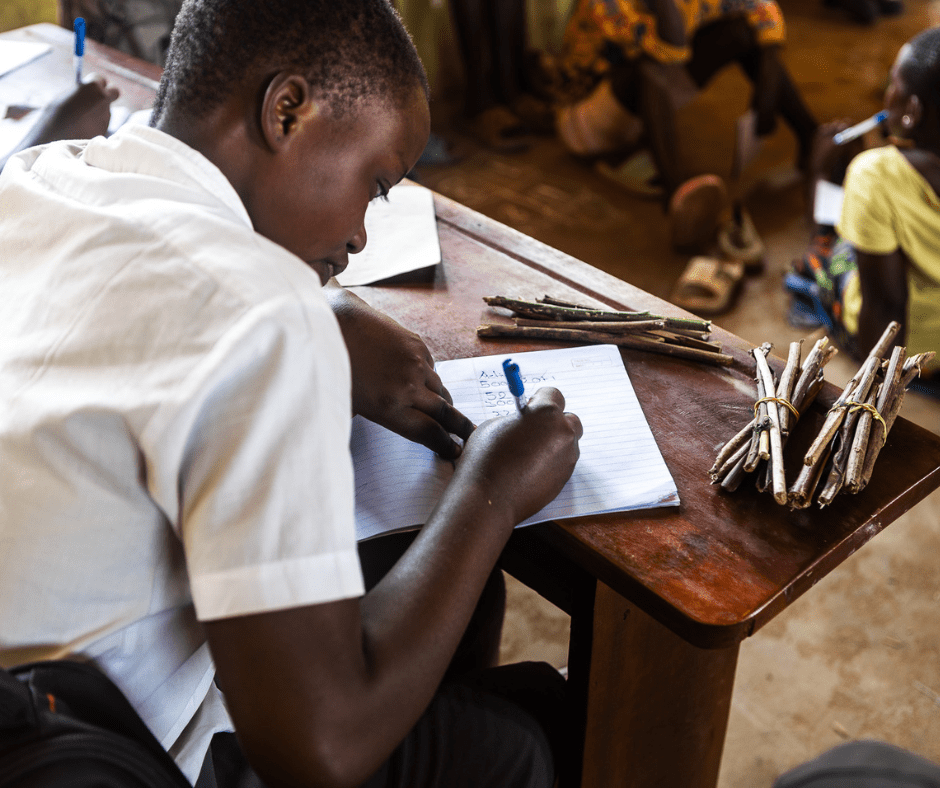 Estudante do Ensino no Nível Adequado a frequentar a escola na Colónia de Refugiados de Kyaka – Uganda, 2023