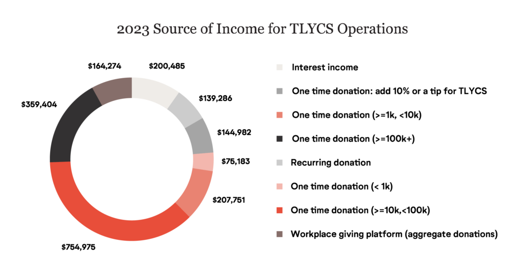 No apêndice “Dinheiro Movimentado em 2023 – O que é que está incluído”, fornecemos uma descrição detalhada do nosso “Dinheiro Movimentado” total (ou seja, o total de donativos às nossas organizações sem fins lucrativos recomendadas que processámos directamente ou que inspirámos) e das nossas despesas operacionais. Consideramos que estes números são um complemento útil às medidas padrão de relatórios regulamentares normalmente utilizadas para efectuar análises financeiras de organizações sem fins lucrativos (por exemplo, o Formulário 990 nos EUA e as declarações apresentadas à ACNC na Austrália).