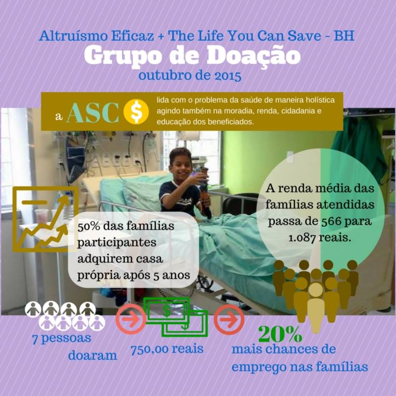 Em outubro de 2015, com o dólar em alta, qualquer doação feita do Brasil para o exterior teve sua eficácia reduzida à 25%. Infelizmente o Brasil não tem nenhuma organização entre as recomendadas pela The Life You can Save ou outras avaliadoras internacionais. O desafio foi portanto encontrar uma instituição que tivesse alta transparência e eficácia reconhecida. A escolhida foi a Associação Saúde Criança.
